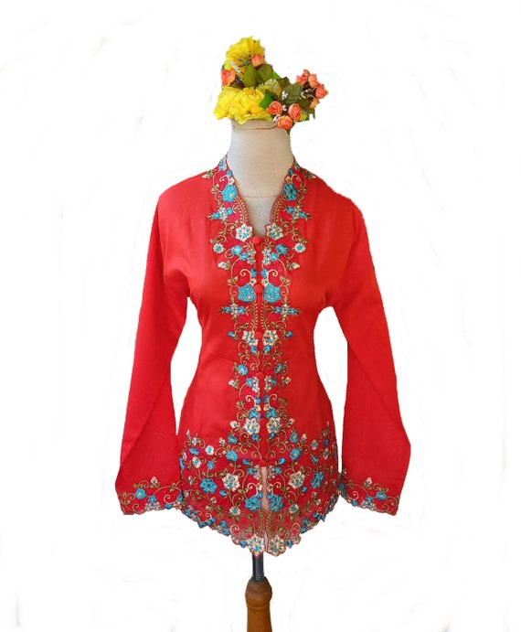 Red Kebaya Kebaya Embroidery Kebaya Nyonya Baju Kebaya Etsy
